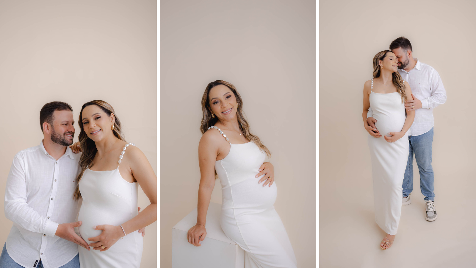 Para gestante temos alguns looks disponíveis no estúdio, mas orientamos que traga algo seu também. Não se preocupe, enviaremos orientações para ajudar na sua escolha e da sua família.